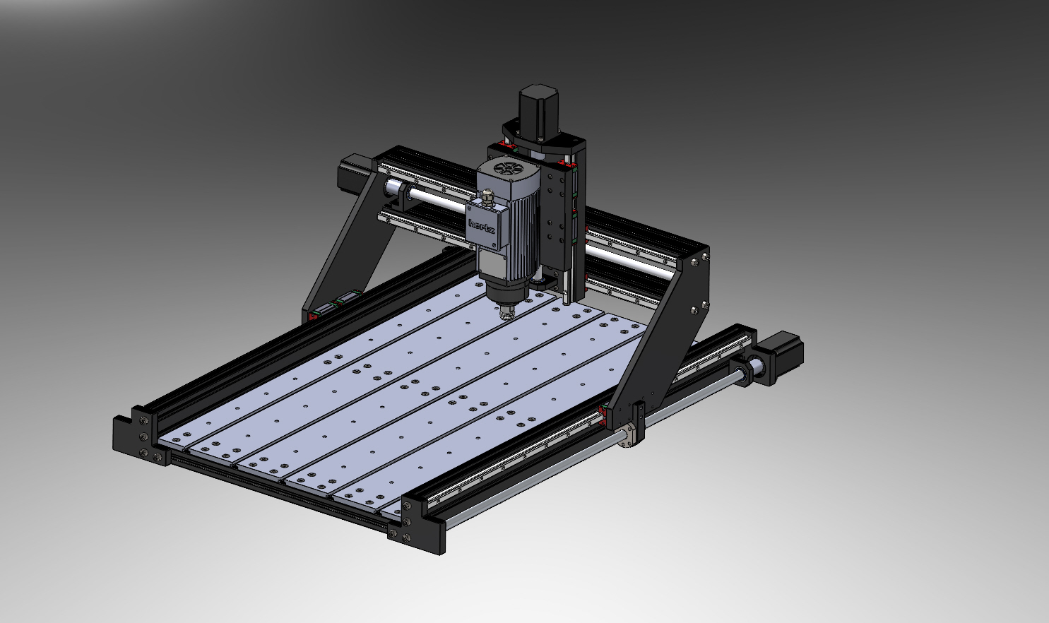 3 Eksen CNC Router. Yaklaşık olarak 600x900 çalışma alanına sahiptir. Ahşap, pcb, pleksiglass, alüminyum ve çelik gibi malzemeleri işleyebilir. Gövdesi alüminyum sigma profiller, alüminyum ve çelik parçalardan oluşur. X ekseninde bir; y ekseninde 2 ve Z ekseninde bir adet olmak üzere toplamda dört adet Nema23 kullanılmıştır. X ve Y eksenlerinde 1610; Z ekseninde ise 1605 vidalı mil kullanılmış yataklamalar 6000 serisi rulmanlar ile sağlanmıştır. Tüm eksenlerde 15'lik lineer ray ve araba kullanılmıştır. Spindle olarak Hertz markalı 1,5 kW 24000 devir motor kullanılmıştır.